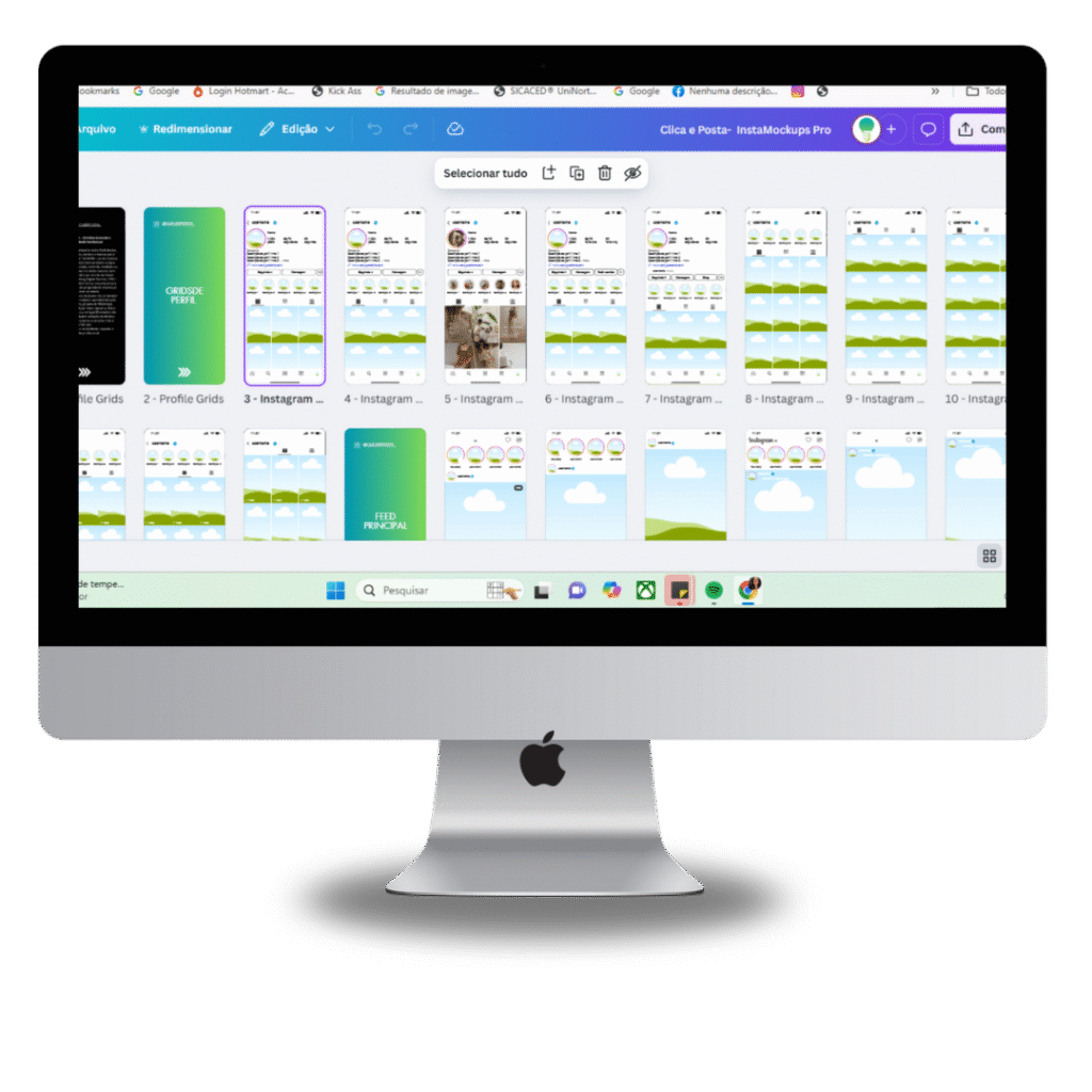 É exatamente aí que entra o InstaMockups Pro – um pack com 86 mockups prontos e editáveis no Canva!