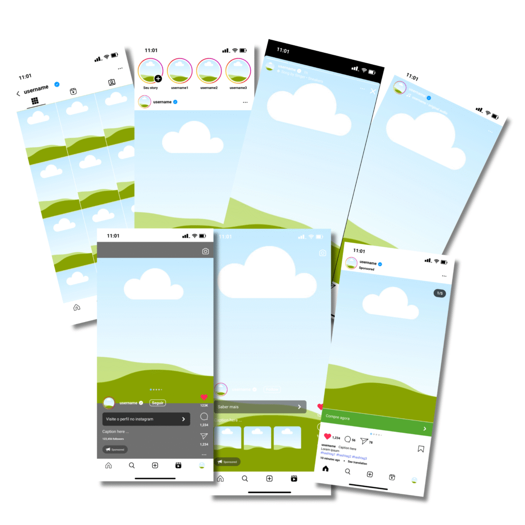 O InstaMockups Pro é um pack com 86 mockups exclusivos de instagram criados especialmente para transformar a forma como você apresenta templates, artes e produtos digitais.